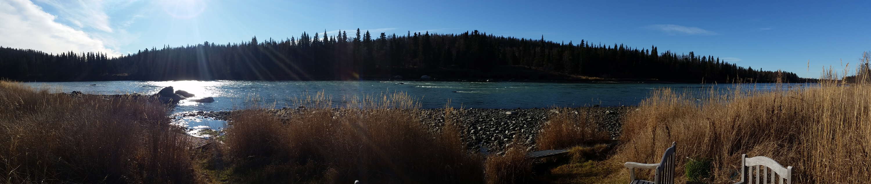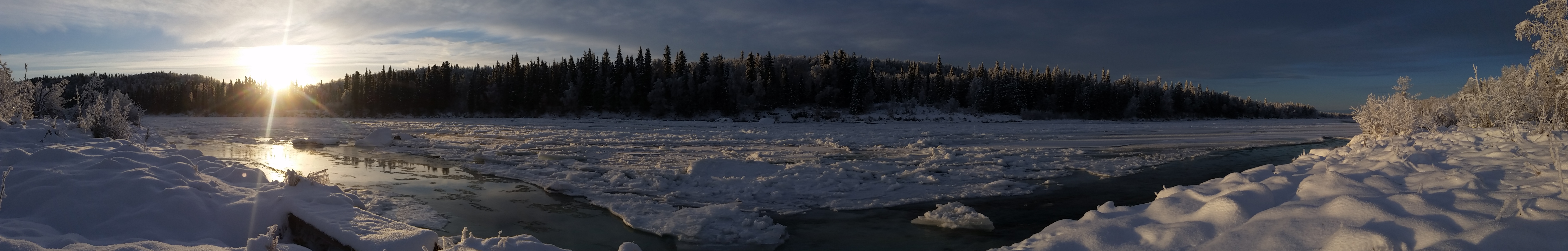 These pictures are taken from our riverside property using a panoramic camera to capture both upriver and downriver views.  We hope you enjoy seeing how different the river looks at different times of the year.