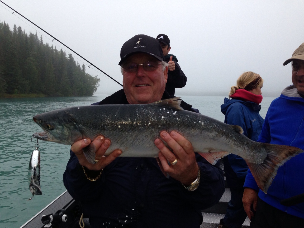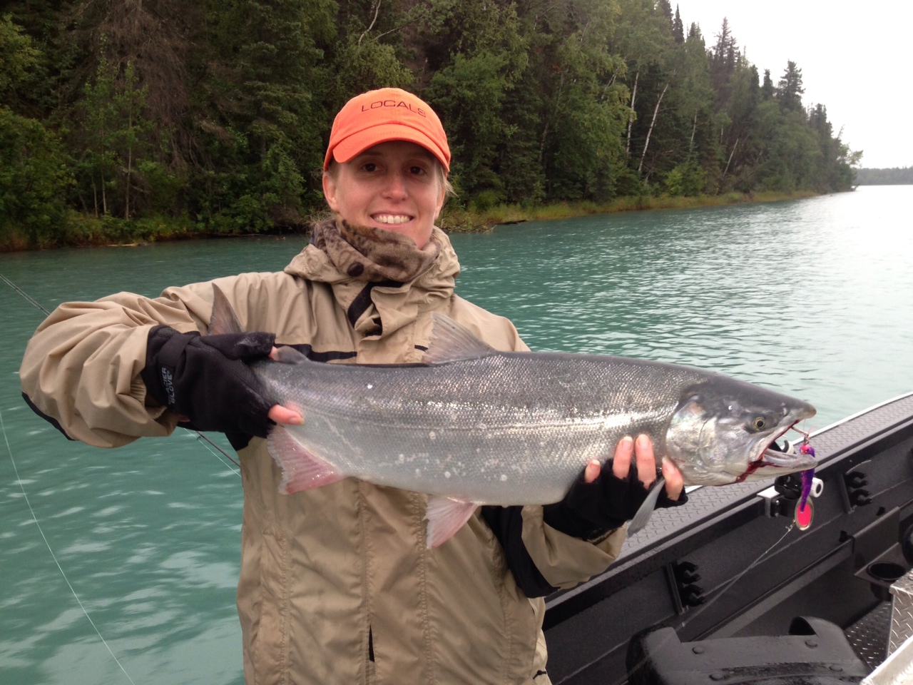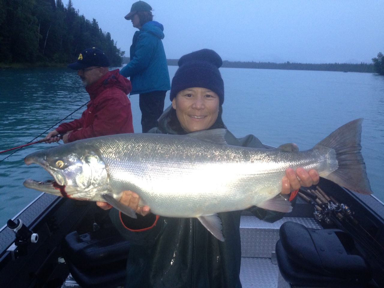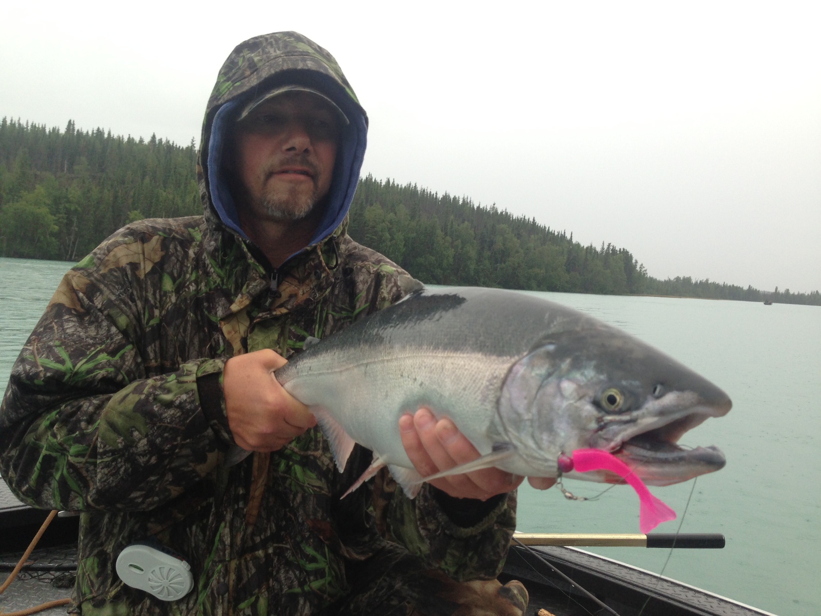 We fish for Kenai Silvers using a variety of methods with the most popular being backtrolling diving lures such as Mag Lips and Kwik Fish, fishing cured salmon eggs on the bottom, and casting and retrieving spinners and jigs. Fishing cured salmon eggs under a bobber is also very effective.