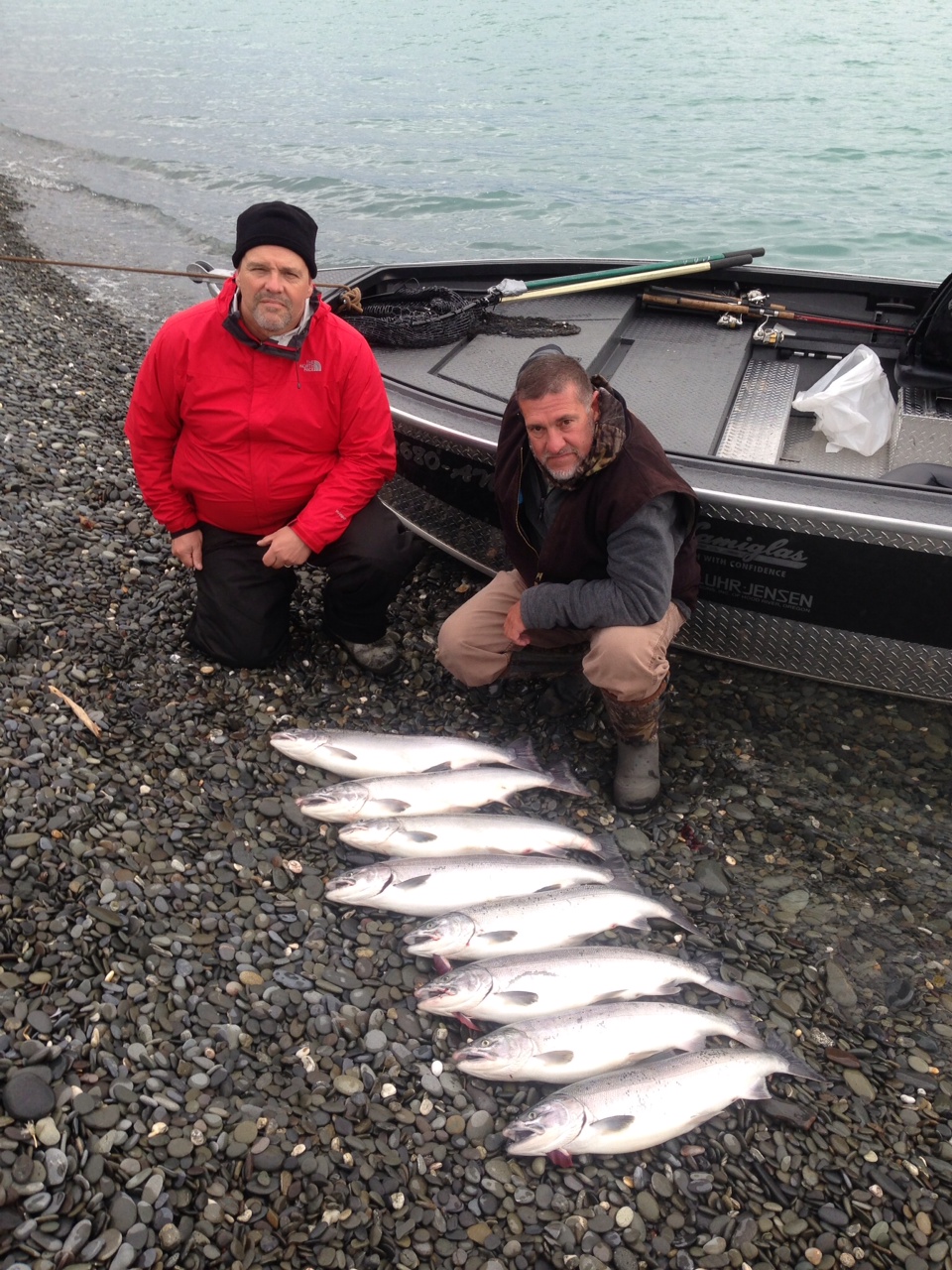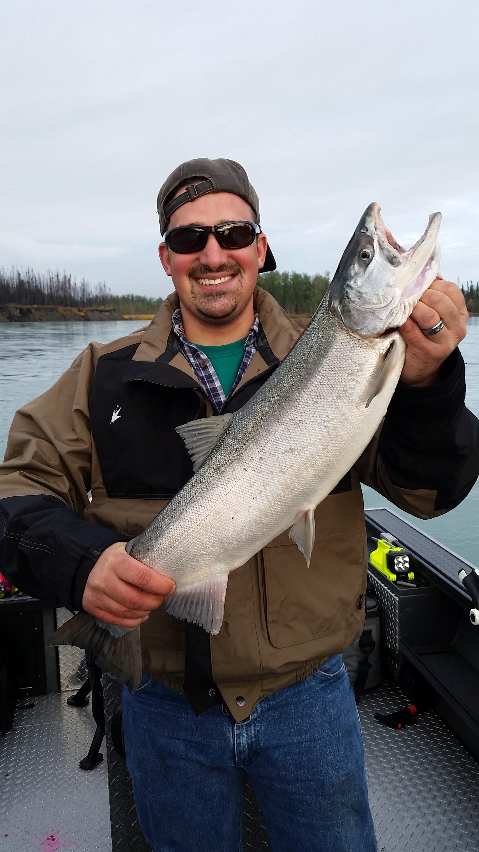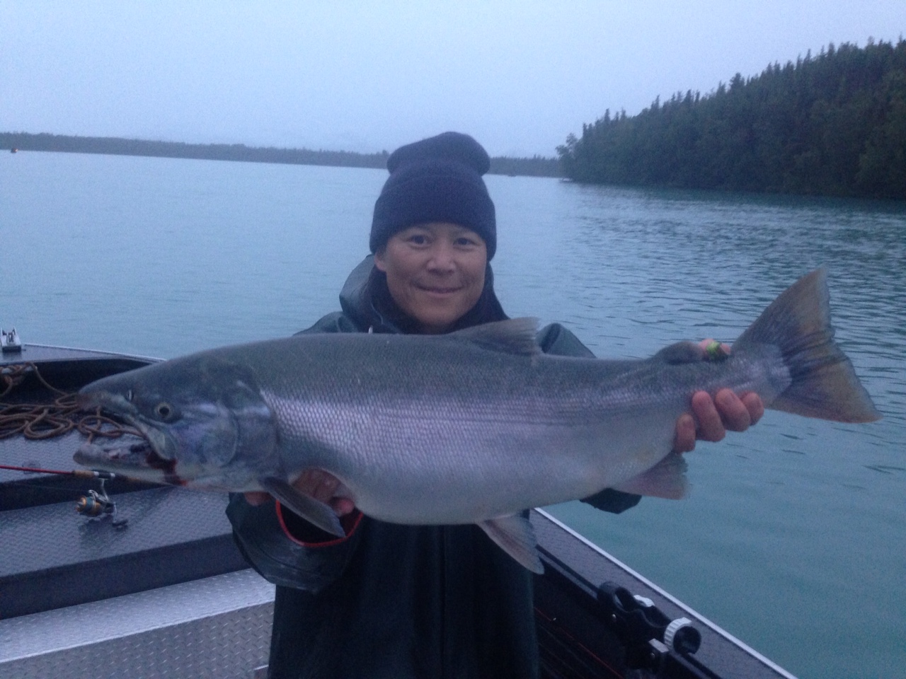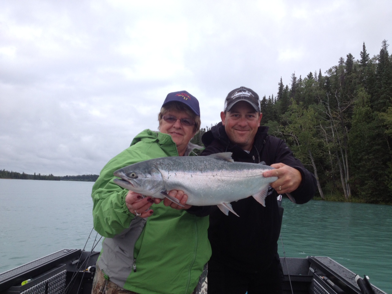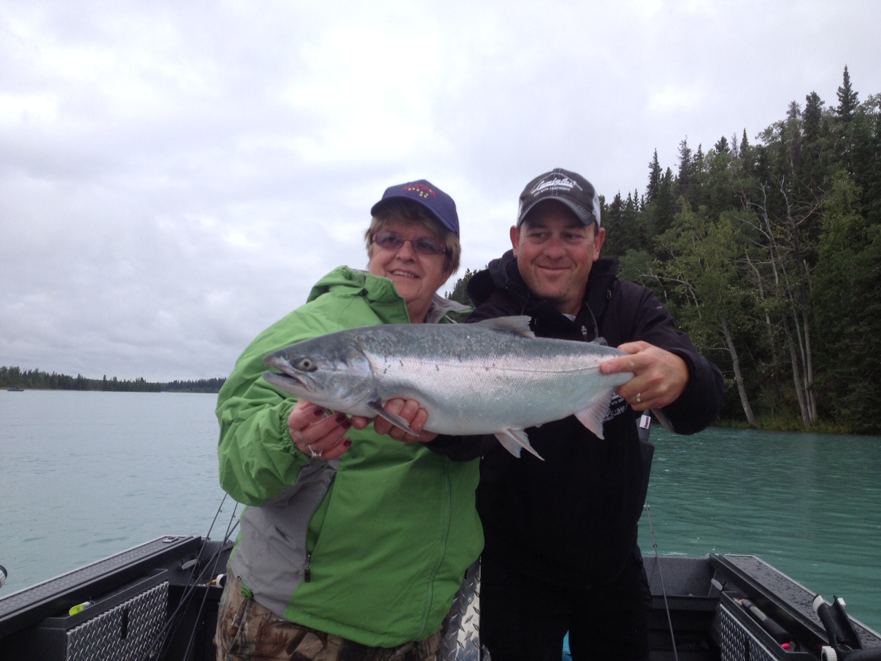We fish for Kenai Silvers using a variety of methods with the most popular being backtrolling diving lures such as Mag Lips and Kwik Fish, fishing cured salmon eggs on the bottom, and casting and retrieving spinners and jigs. Fishing cured salmon eggs under a bobber is also very effective.