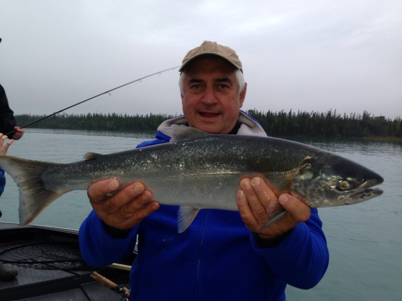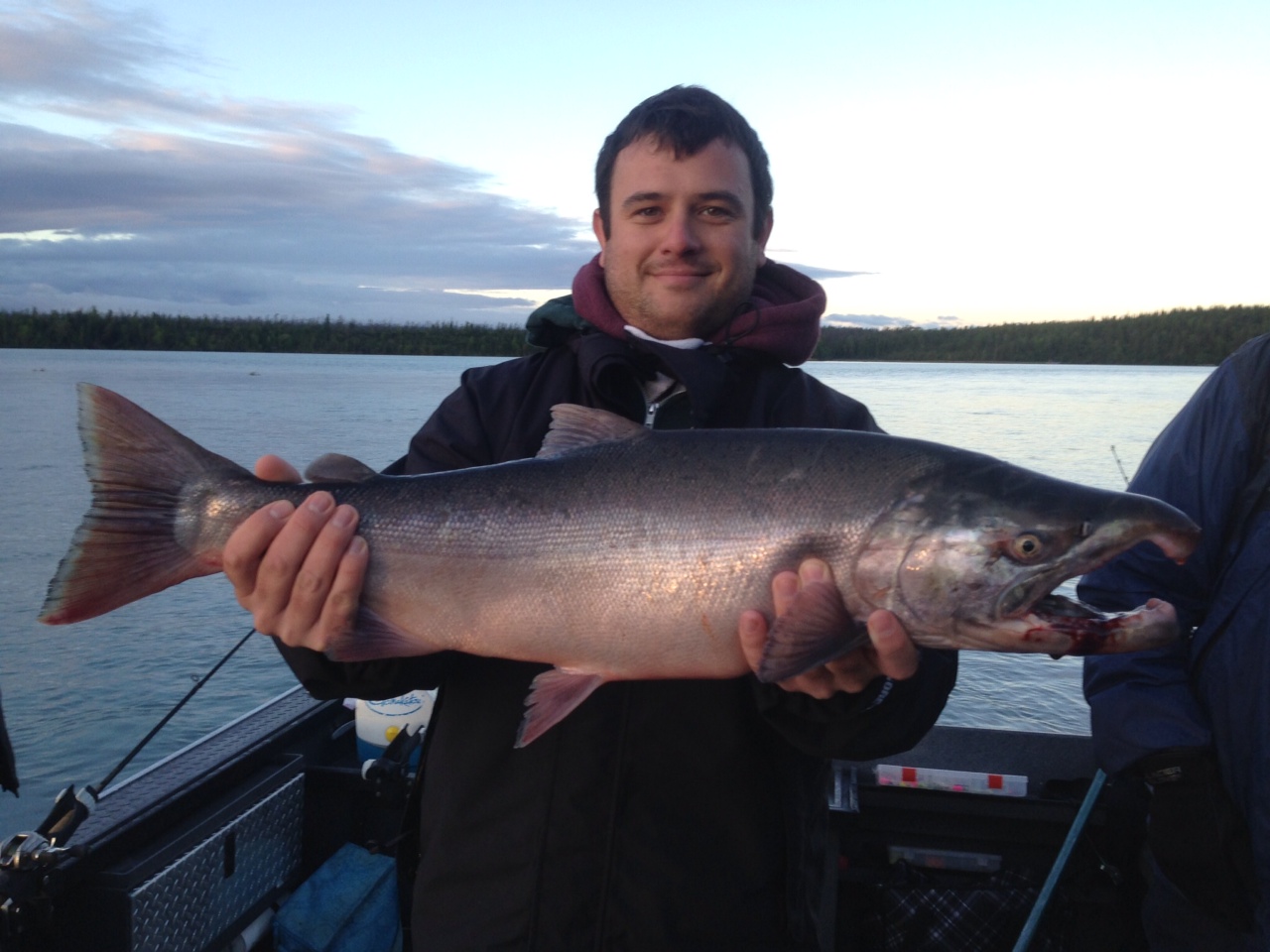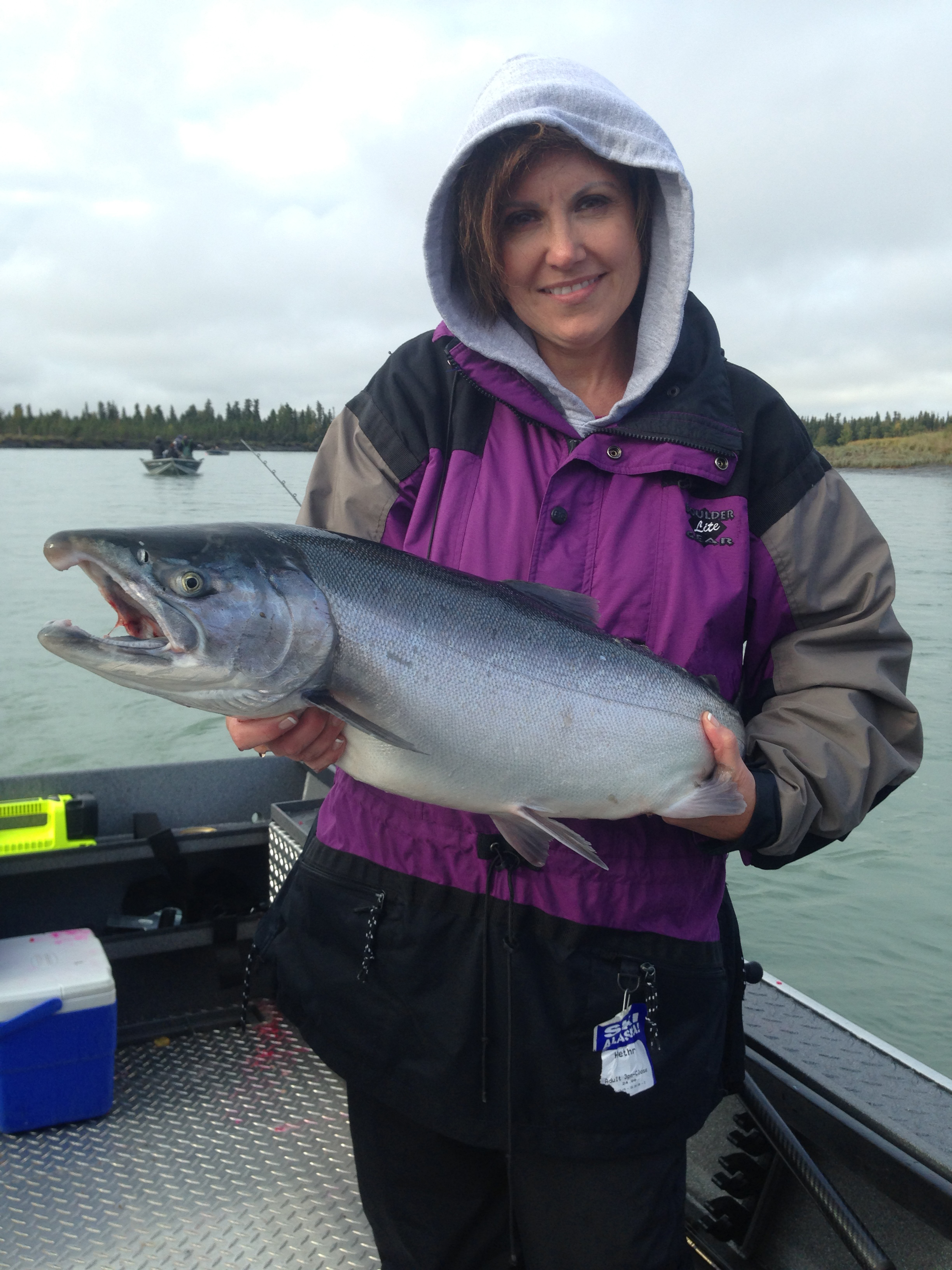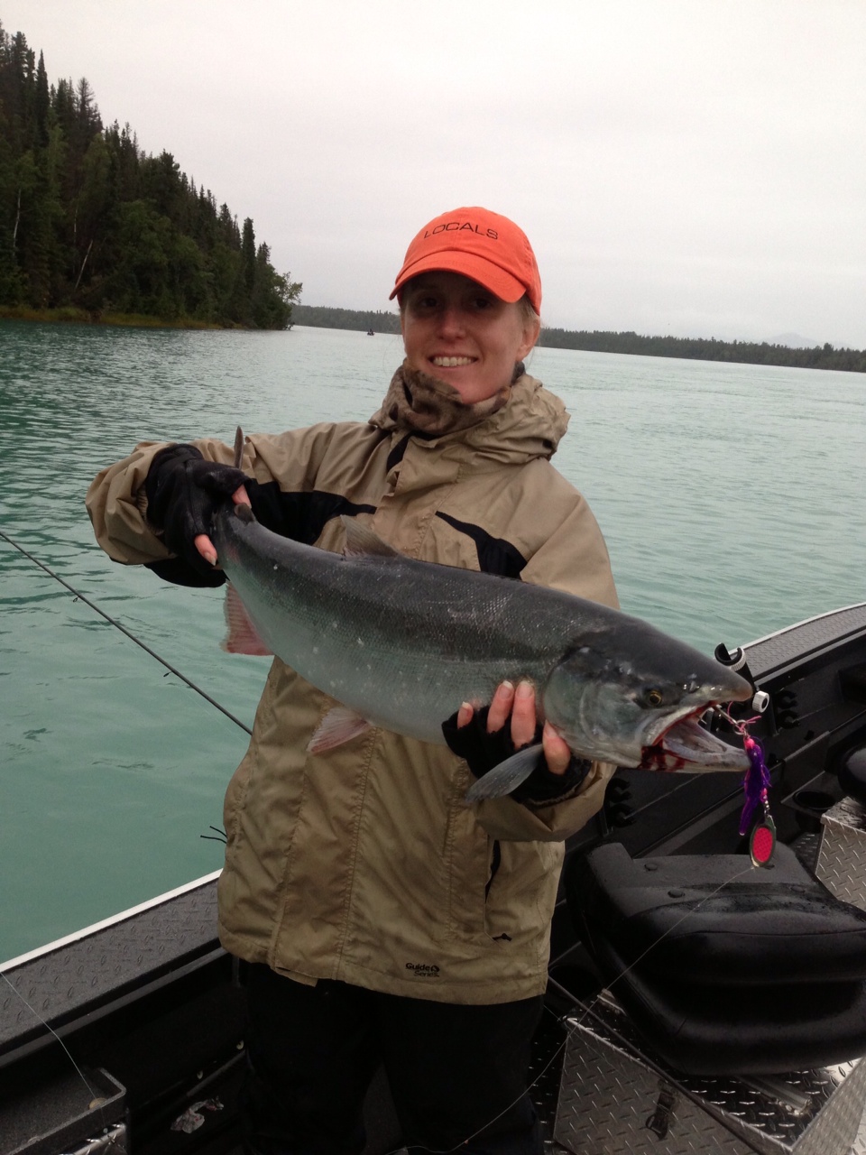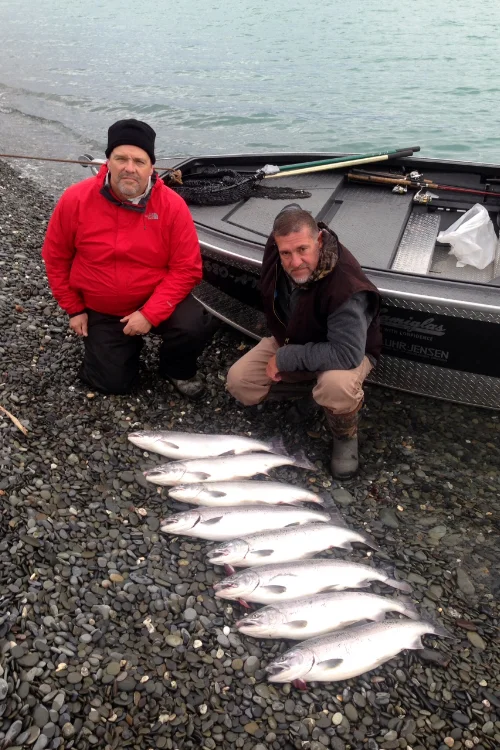 We fish for Kenai Silvers using a variety of methods with the most popular being backtrolling diving lures such as Mag Lips and Kwik Fish, fishing cured salmon eggs on the bottom, and casting and retrieving spinners and jigs. Fishing cured salmon eggs under a bobber is also very effective.