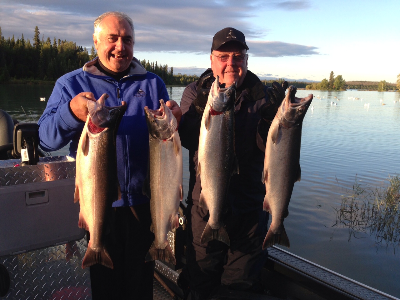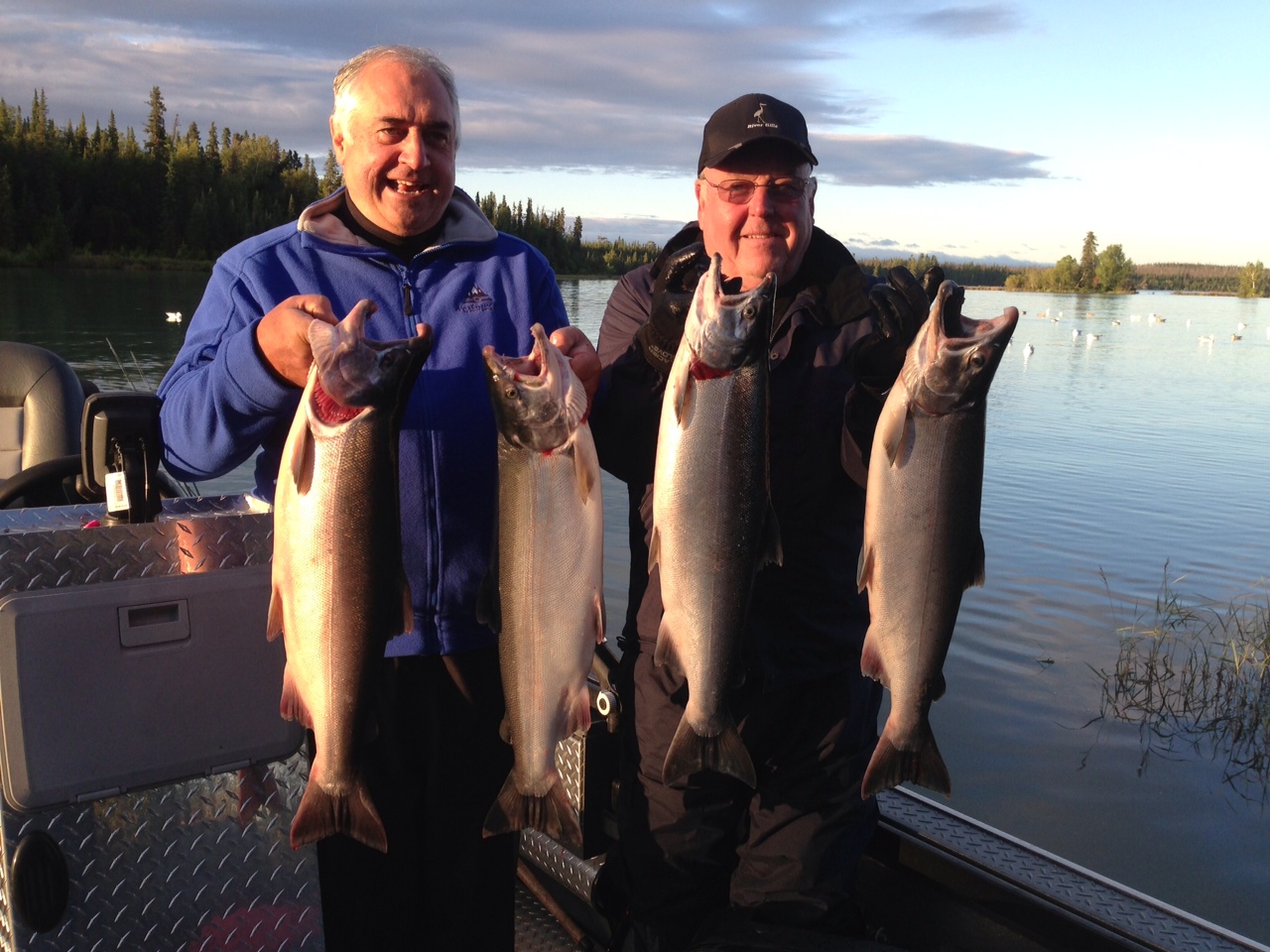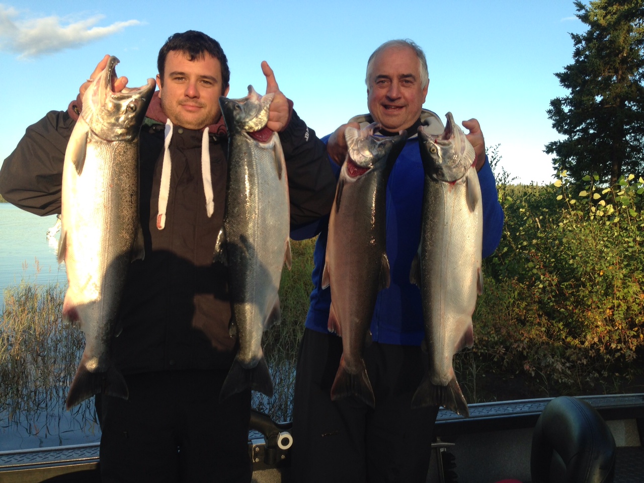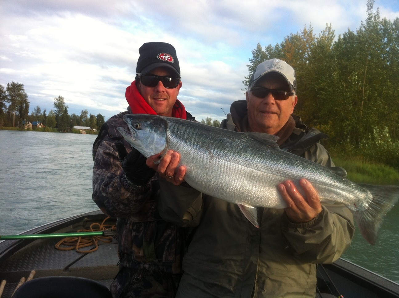 The peak of the second run normally occurs in late September and early October. Late run Kenai Silvers are larger in size than the early run silvers, averaging 10-12 lbs. The late run silvers are known to be more main-stem spawners and most will spawn in the waters below Skilak Lake.