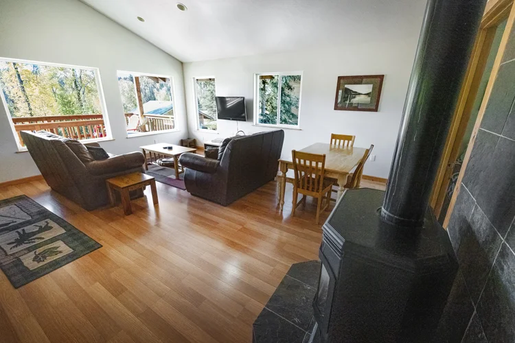 The Edgewater Two Kenai River fishing cabin is by far our largest and most well-appointed cabin. It features a large, covered deck and has a filtered view of the Kenai River.